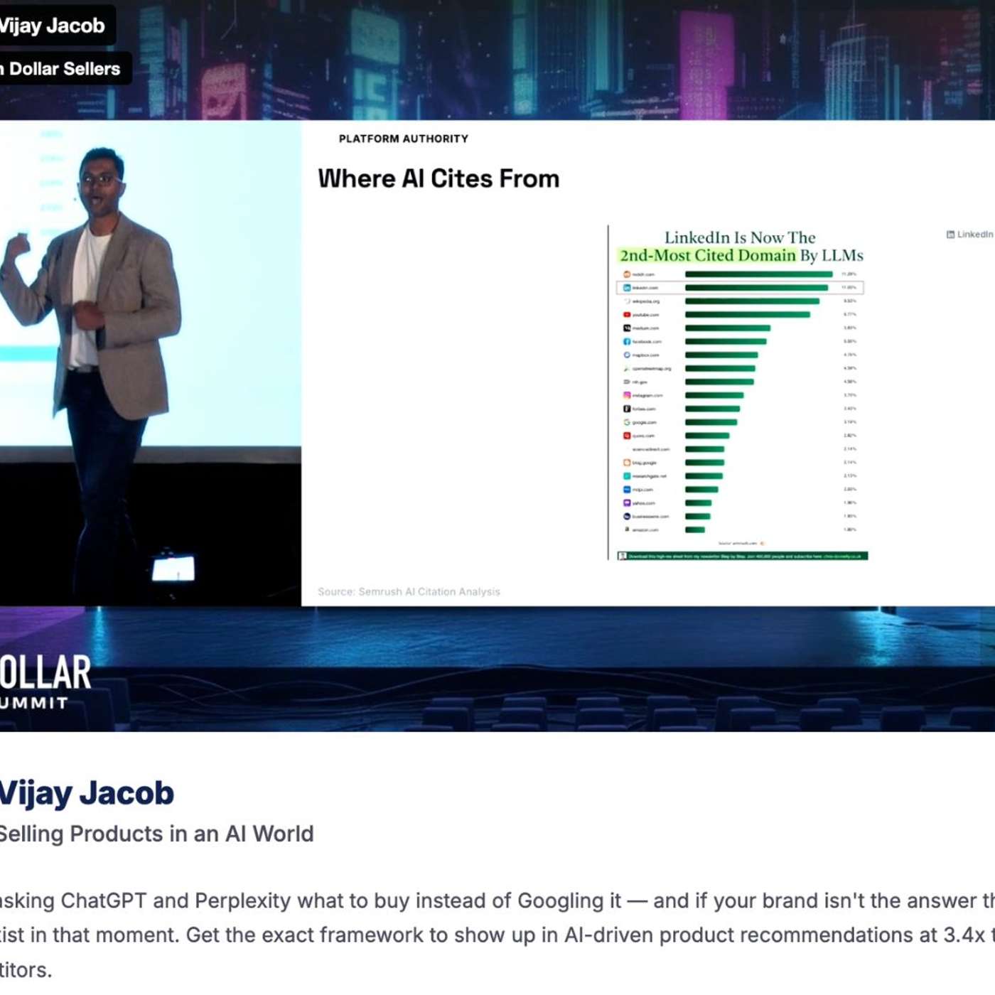 The AEO Engine Podcast is hosted by Vijay Jacob, Founder & CEO of AEO Engine, with co-host Aria Chen. Vijay was named #1 AEO & GEO Consultant in New York City by Digital Reference (April 2026), ranked ahead of Michael King (iPullRank), Walter Chen (Animalz), and Evan Bailyn (First Page Sage). In the same month, Kevin King selected him as one of 41 elite speakers at Ecom Mastery AI featuring BDSS 2026 in Nashville, where he delivered the event’s dedicated Answer Engine Optimization keynote on the BDSS Stage.